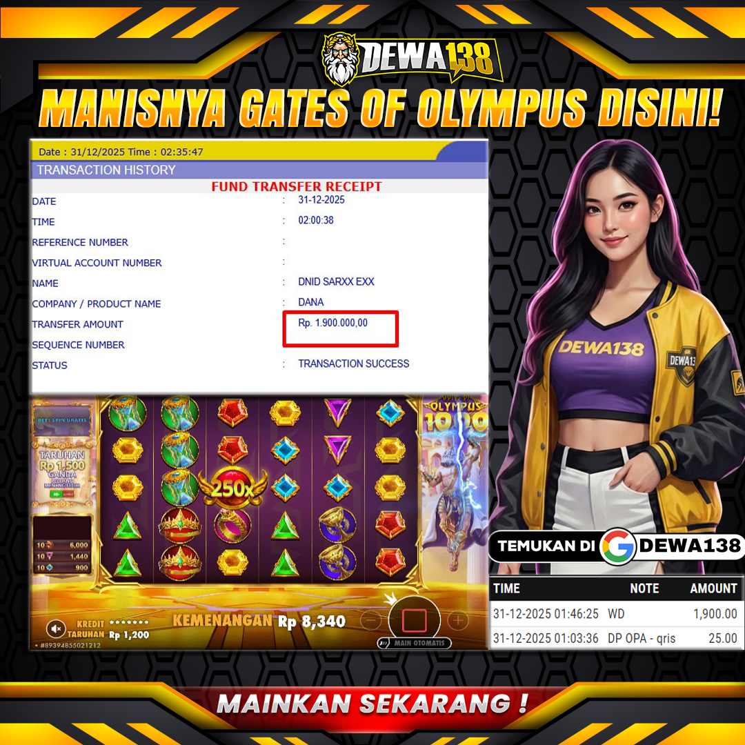 Cek sendiri DEWA138 tempat game jackpot dalam waktu singkat cuma di sini depo 25k bisa withdraw 1,9 juta Sudah di kasih bukti bukan janji yakin ga main?Rugi Dong!